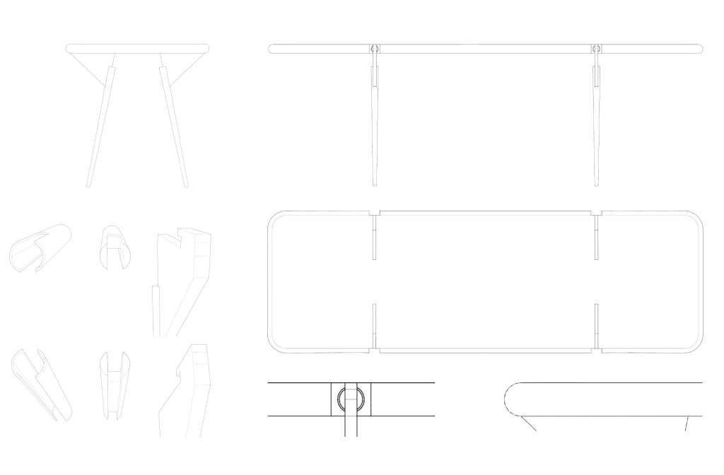Its slim dimensions, only 800mm wide support a intimate dining ritual, while fitting even the smaller living rooms. If necessary, the dining table can be dismanteled. The leg detailing provides an easy disassembly, without any use of screws.