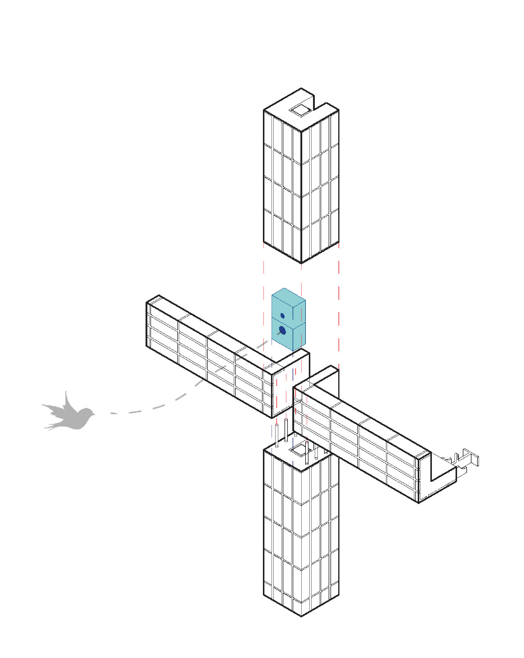 This graduation project consists of 102 homes for solo dwellers in the Minervahaven in Amsterdam, following an urban plan based on the principle of low-rise high-density. The design comprises diverse housing types, suited for both types of solo dwellers. Moreover, the building is covered with spaces for plants to grow, nesting boxes for birds, bats and insects and boasts a greenhouse and a tower for trees on the roof, symbolically celebrating nature as landmark within the city. If we strive for reconciliation between humans and nature, we must allow both to appropriate spaces; to leave their marks of inhabitation; to dwell within the city.